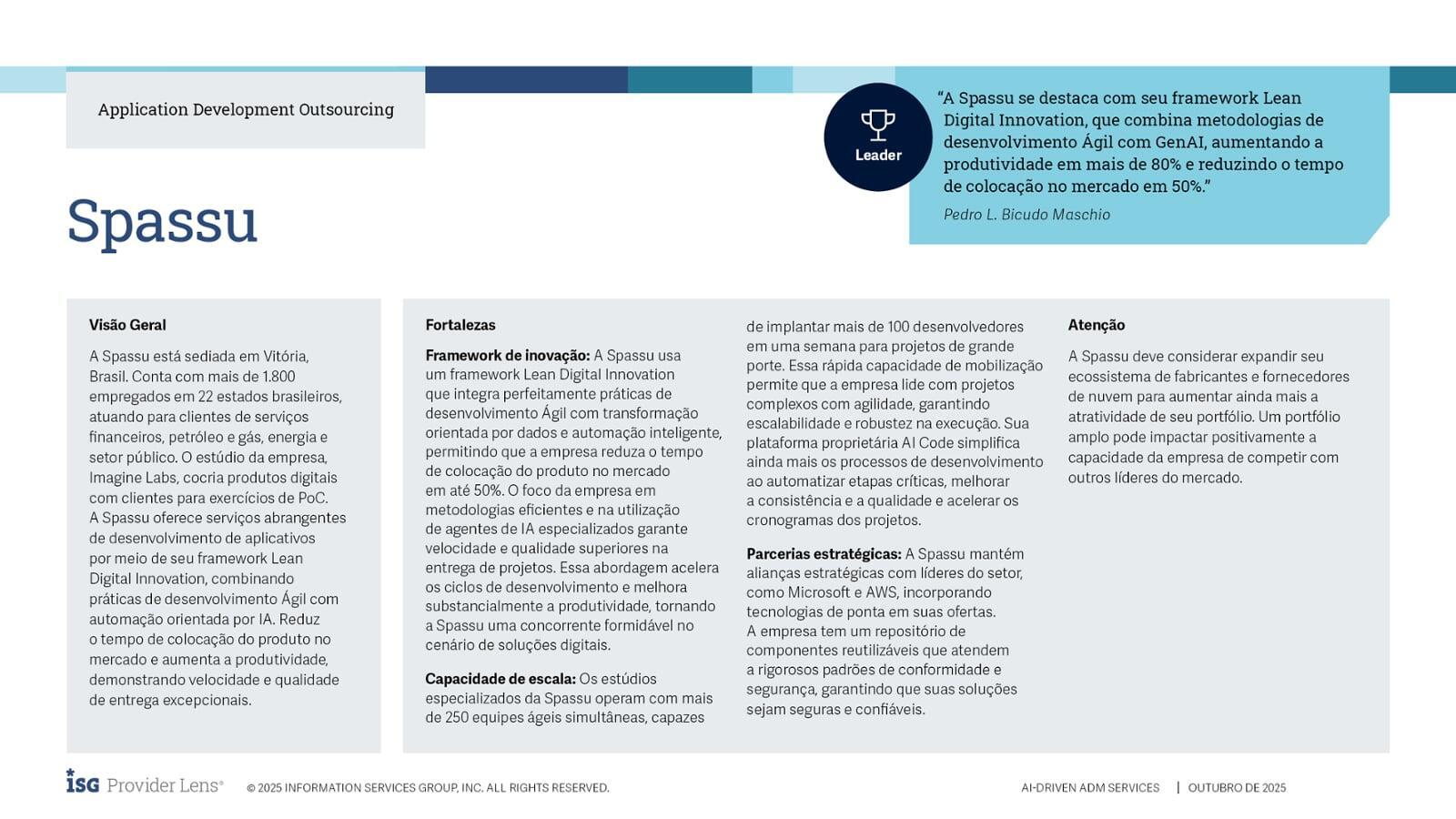 O reconhecimento da ISG Provider Lens como Líder em AI-Driven ADM Services 2025 reforça nosso propósito de ser uma empresa ambidestra digital — unindo inovação tecnológica e excelência operacional para gerar valor 360º a clientes, parceiros e sociedade.